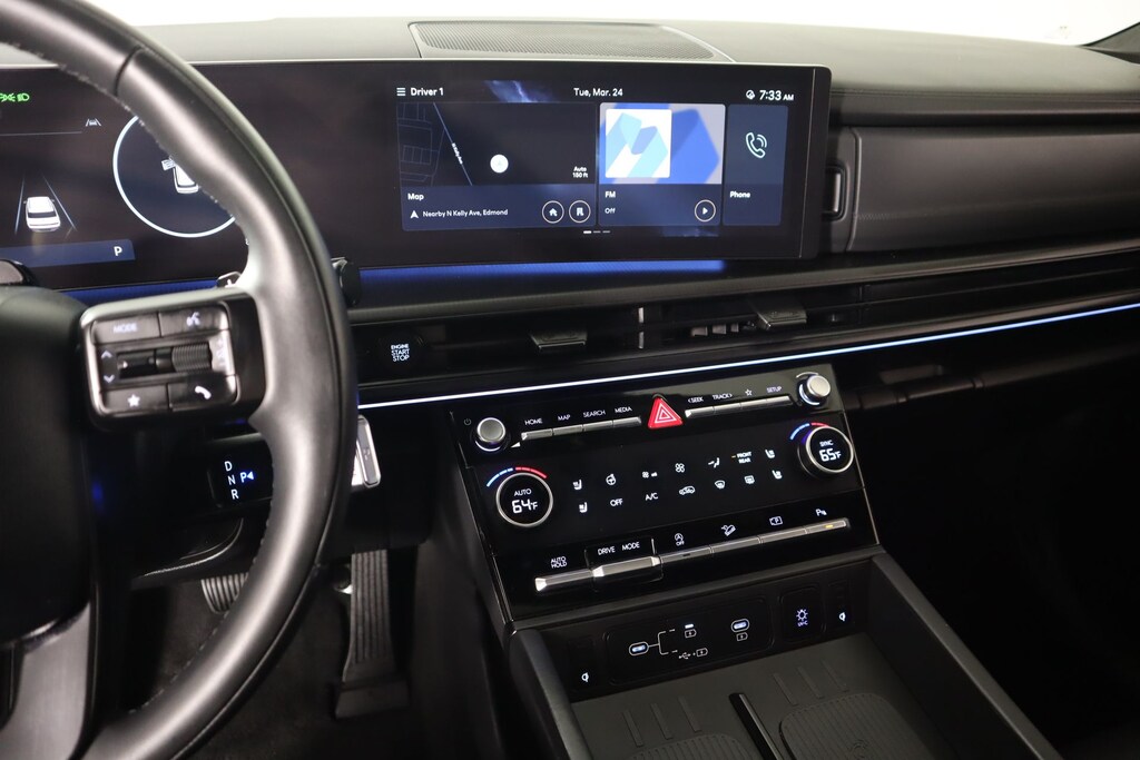 THIS VEHICLE COMES EQUIPPED WITH THE FOLLOWING OPTIONS AND FEATURES: Option Group 01, Hyundai Certified Used Vehicles Certified, Black Leather, 12 Speakers, 3rd row seats: bench, 4-Wheel Disc Brakes, ABS brakes, Air Conditioning, Alloy wheels, AM/FM radio: SiriusXM, Apple CarPlay & Android Auto, Auto High-beam Headlights, Auto-dimming Rear-View mirror, Automatic temperature control, Brake assist, Bumpers: body-color, Delay-off headlights, Driver door bin, Driver vanity mirror, Dual front impact airbags, Dual front side impact airbags, Electronic Stability Control, Emergency communication system, Exterior Parking Camera Rear, Four wheel independent suspension, Front anti-roll bar, Front Bucket Seats, Front Center Armrest, Front dual zone A/C, Front reading lights, Fully automatic headlights, Garage door transmitter: HomeLink, Heads-Up Display, Heated & Ventilated Front Bucket Seats, Heated door mirrors, Heated front seats, Heated rear seats, Heated steering wheel, Illuminated entry, Knee airbag, Leather steering wheel, Low tire pressure warning, Memory seat, Navigation System, Occupant sensing airbag, Outside temperature display, Overhead airbag, Overhead console, Panic alarm, Passenger door bin, Passenger vanity mirror, Power door mirrors, Power driver seat, Power Liftgate, Power moonroof, Power passenger seat, Power steering, Power windows, Premium Nappa Leather Seat Trim, Radio: AM/FM/HD Bose Premium Audio System, Rain sensing wipers, Rear anti-roll bar, Rear side impact airbag, Rear window defroster, Rear window wiper, Remote keyless entry, Security system, Speed control, Speed-sensing steering, Split folding rear seat, Spoiler, Steering wheel mounted audio controls, Tachometer, Telescoping steering wheel, Tilt steering wheel, Traction control, Trip computer, Turn signal indicator mirrors, Variably intermittent wipers, Ventilated front seats, and Wheels: 21" x 8.5J Unique Dark Finish Alloy.