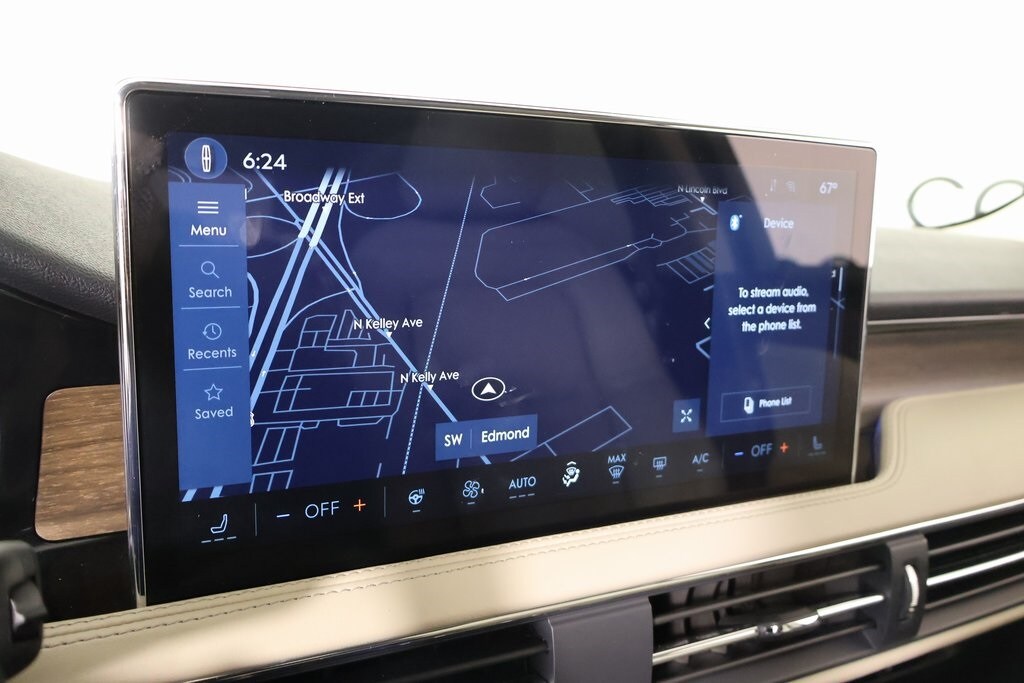 THIS VEHICLE COMES EQUIPPED WITH THE FOLLOWING OPTIONS AND FEATURES: Equipment Group 201A (2 Additional USB Ports in Rear of Center Console, 60/40 EasyFold Rear Seat w/Power Seatback Release, Frameless Auto Dimming Rearview Mirror, Hands-Free Liftgate, Heated Sideview Mirrors, Heated Steering Wheel, Heated/Ventilated Driver & Front Passenger Seats, Phone As A Key (PAAK), Power Tilt/Telescoping Steering Column w/Memory, Rain Sensing Wipers, Universal Garage Door Opener, Windshield Wiper De-Icer, and Wireless Charging Pad), 19" Bright Machined Aluminum Wheels, Alexa Built-In, Heated front seats, Navigation system: Connected Navigation (4-year trial), Power Liftgate, Radio: Lincoln Premium Audio System w/MP3, SiriusXM w/360L Radio, SYNC 4 Communications & Entertainment System, 360-Degree Camera, 4-Wheel Disc Brakes, 9 Speakers, ABS brakes, Air Conditioning, All-Weather Floor Liners, Alloy wheels, AM/FM radio: SiriusXM with 360L, Apple CarPlay/Android Auto, Auto High-beam Headlights, Auto-dimming Rear-View mirror, Automatic temperature control, Brake assist, Bumpers: body-color, Compass, Delay-off headlights, Driver door bin, Driver vanity mirror, Dual front impact airbags, Dual front side impact airbags, Electronic Stability Control, Emergency communication system: 911 Assist, Four wheel independent suspension, Front anti-roll bar, Front Bucket Seats, Front Center Armrest, Front dual zone A/C, Front License Plate Bracket, Front Parking Sensors, Front reading lights, Fully automatic headlights, Heated door mirrors, Illuminated entry, Knee airbag, Leather steering wheel, Low tire pressure warning, Memory seat, Occupant sensing airbag, Outside temperature display, Overhead airbag, Overhead console, Panic alarm, Passenger door bin, Passenger vanity mirror, Post-Collision Braking, Power door mirrors, Power driver seat, Power passenger seat, Power steering, Power windows, Premium Leather-Trimmed Heated Captain's Chairs, Radio data system, Rear anti-roll bar, Rear Parking Sensors, Rear reading lights, Rear seat center armrest, Rear window defroster, Rear window wiper, Remote keyless entry, Reverse Brake Assist, Security system, Speed control, Speed-sensing steering, Speed-Sensitive Wipers, Split folding rear seat, Spoiler, Steering wheel mounted A/C controls, Steering wheel mounted audio controls, Tachometer, Telescoping steering wheel, Tilt steering wheel, Traction control, Trip computer, and Variably intermittent wipers.