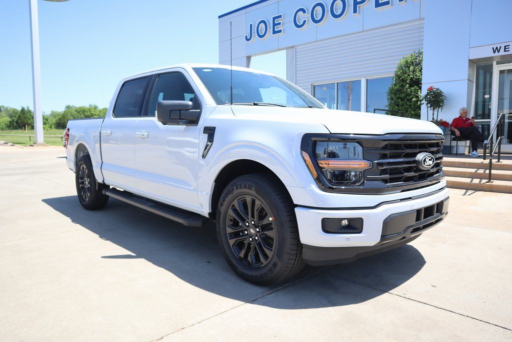 $13,958 off MSRP! Joe Cooper Ford of Edmond is delighted to offer 2025 Ford F-150 XLT in White Metallic with Black. Well equipped with: GVWR: 6,426 lbs Payload Package, 3.55 Axle Ratio, 4-Wheel Disc Brakes, 6 Speakers, ABS brakes, Air Conditioning, Alloy wheels, Auto High-beam Headlights, Brake assist, Bumpers: chrome, Cloth 40/20/40 Front Seat, Compass, Delay-off headlights, Driver door bin, Driver vanity mirror, Dual front impact airbags, Dual front side impact airbags, Electronic Stability Control, Emergency communication system: SYNC 4 911 Assist, Front anti-roll bar, Front Center Armrest, Front fog lights, Front reading lights, Front wheel independent suspension, Fully automatic headlights, Heated door mirrors, Illuminated entry, Low tire pressure warning, Occupant sensing airbag, Outside temperature display, Overhead airbag, Overhead console, Panic alarm, Passenger door bin, Passenger vanity mirror, Power door mirrors, Power steering, Power windows, Radio data system, Rear Parking Sensors, Rear reading lights, Rear step bumper, Rear window defroster, Remote keyless entry, Security system, Speed control, Split folding rear seat, Steering wheel mounted audio controls, SYNC 4 w/Enhanced Voice Recognition, Tachometer, Telescoping steering wheel, Tilt steering wheel, Traction control, Trip computer, Variably intermittent wipers, Voltmeter, and Wheels: 17" Silver Painted Aluminum.