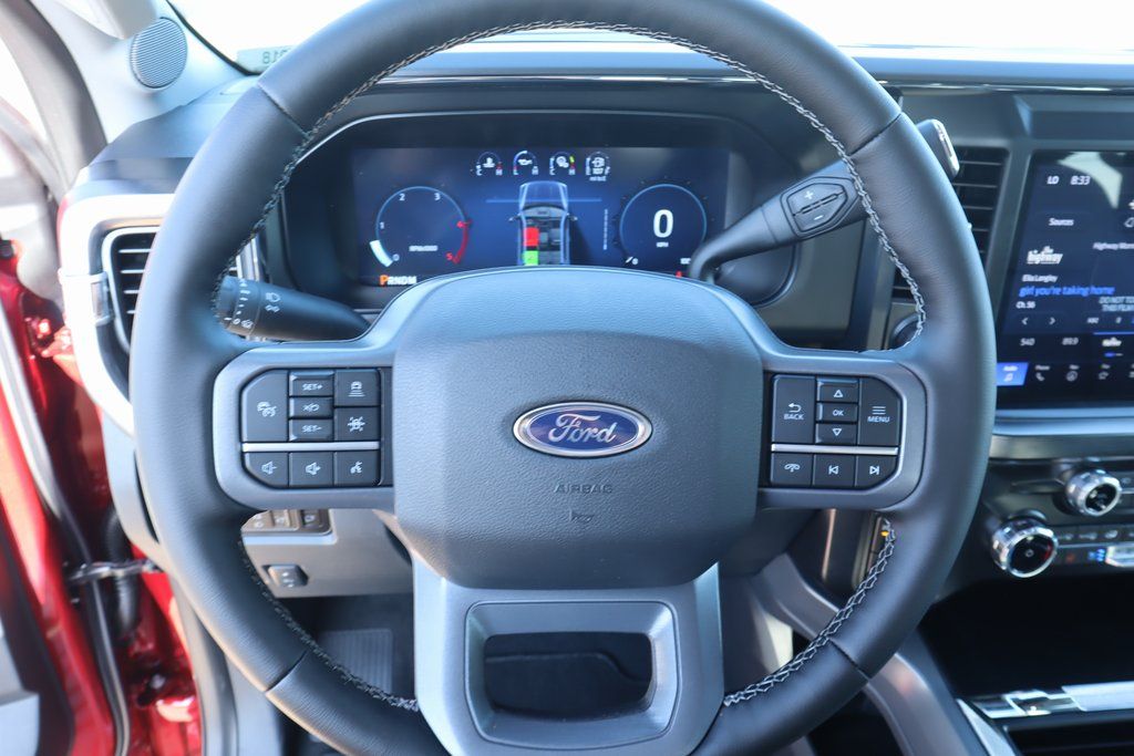 Joe Cooper Ford of Shawnee is proud to offer this stout 2025 Ford F-250SD Lariat in Ruby Red Metallic Tinted Clearcoat. Well equipped with Black Appearance Package (6" Ebony Black Angular Running Boards, Black Painted Front Grille Surround, Body Color Front and Rear Bumpers, and Ebony Black Painted Mirror Caps), FX4 Off-Road Package (Hill Descent Control, Off-Road Specifically Tuned Shock Absorbers, and Unique FX4 Off-Road Box Decal), GVWR: F-250 >10K Package, High Capacity 11.6" Axle Upgrade Package, Lariat Ultimate Package (4-Way Adjustable Headrests, Head-Up Display, Power-Deployable Running Boards, Power-Sliding Rear-Window with Defrost, Privacy Glass, Pro Trailer Backup Assist, Pro Trailer Hitch Assist, Radio: B&O Unleashed Sound System by Bang & Olufsen, SiriusXM Radio with 360L, SYNC 4 with Enhanced Voice Recognition, and Tailgate Step and Handle), Order Code 608A (Flow-Through Console, Front ActiveX Trimmed 40/Console/40 Seats, Radio: B&O Sound System by Bang and Olufsen, and Wheels: 18" Bright Machined and Carbonized Gray Aluminum), 4WD, 4-Wheel Disc Brakes, 8 Speakers, ABS brakes, Adaptive Cruise Control with Stop-and-Go, Adjustable pedals, Air Conditioning, Alloy wheels, AM/FM radio: SiriusXM with 360L, Auto High-beam Headlights, Auto-dimming Rear-View mirror, Automatic High Beam, Automatic temperature control, BLIS with Cross-Traffic Alert, Brake assist, Bumpers: chrome, Compass, Delay-off headlights, Driver door bin, Driver vanity mirror, Dual AGM 68 AH Battery, Dual front impact airbags, Dual front side impact airbags, Electronic Stability Control, Emergency communication system: SYNC 4 911 Assist, Engine Block Heater, Front and Rear Parking Sensors, Front anti-roll bar, Front Bucket Seats, Front Center Armrest, Front dual zone A/C, Front fog lights, Front License Plate Bracket, Front reading lights, Fully automatic headlights, Garage door transmitter, Heated door mirrors, Heated front seats, Heated rear seats, Heated steering wheel, Illuminated entry, Internet access capable: FordPass Connect 5G, Lane-Keeping System, Low tire pressure warning, Memory seat, Navigation System, Outside temperature display, Overhead airbag, Overhead console, Panic alarm, Passenger door bin, Passenger vanity mirror, Pedal memory, Post-Collision Braking, Power door mirrors, Power driver seat, Power passenger seat, Power steering, Power windows, Pre-Collision Assist, Rain sensing wipers, Rear Parking Sensors, Rear reading lights, Rear seat center armrest, Rear step bumper, Rear window defroster, Remote keyless entry, Security system, Speed control, Split folding rear seat, Steering wheel mounted audio controls, Tachometer, Telescoping steering wheel, Tilt steering wheel, Traction control, Trip computer, Turn signal indicator mirrors, Twin Panel Power Moonroof, Upfitter Switches (6), Variably intermittent wipers, and Ventilated front seats.