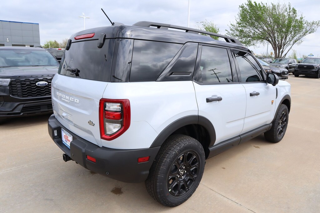 Joe Cooper Ford of Shawnee is pleased to offer this great 2026 Ford Bronco Sport Badlands in Space White Metallic. Well equipped with Badlands Tech Package (Connected Navigation (1-Year Included), Noise Reduction Module, and Radio: HD w/B&O Sound System by Bang & Olufsen), Equipment Group 400A Standard Package (AM/FM Stereo, Leather-Trimmed Heated Front Sport Contour Bucket Seats, SiriusXM with 360L, SYNC 4 with Enhanced Voice Recognition, and Wheels: 17" Matte Black-Painted Aluminum), Ford Connectivity Package (1-Year Included), Internet access capable: 5G Modem - Ford Connectivity Package, 4-Wheel Disc Brakes, 6 Speakers, ABS brakes, Air Conditioning, Alloy wheels, AM/FM radio: SiriusXM with 360L, Apple CarPlay/Android Auto, Auto High-beam Headlights, Auto-dimming Rear-View mirror, Automatic temperature control, Brake assist, Compass, Delay-off headlights, Driver door bin, Driver vanity mirror, Dual front impact airbags, Dual front side impact airbags, Electronic Stability Control, Emergency communication system: SYNC 4 911 Assist, Exterior Parking Camera Rear, Four wheel independent suspension, Front anti-roll bar, Front Bucket Seats, Front Center Armrest, Front fog lights, Front reading lights, Fully automatic headlights, Heated door mirrors, Heated front seats, Heated steering wheel, Illuminated entry, Knee airbag, Low tire pressure warning, Memory seat, Occupant sensing airbag, Outside temperature display, Overhead airbag, Overhead console, Panic alarm, Passenger door bin, Passenger vanity mirror, Power door mirrors, Power driver seat, Power passenger seat, Power steering, Power windows, Radio data system, Rear anti-roll bar, Rear reading lights, Rear seat center armrest, Rear window defroster, Rear window wiper, Remote keyless entry, Security system, Speed control, Speed-sensing steering, Speed-Sensitive Wipers, Split folding rear seat, Steering wheel mounted audio controls, Tachometer, Telescoping steering wheel, Tilt steering wheel, Traction control, Trip computer, and Variably intermittent wipers.