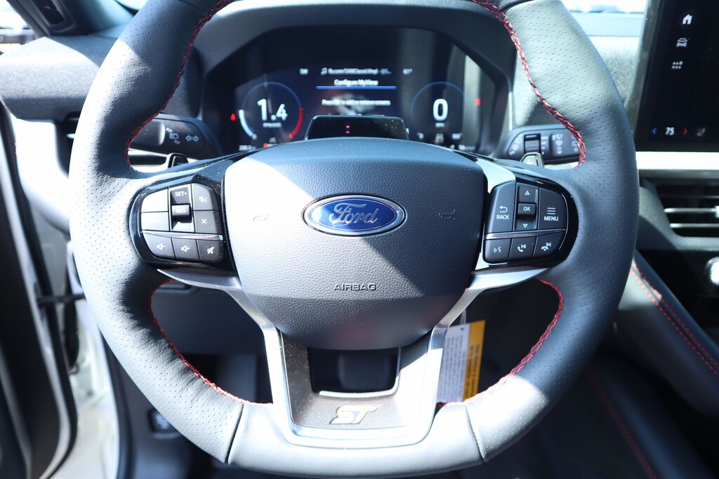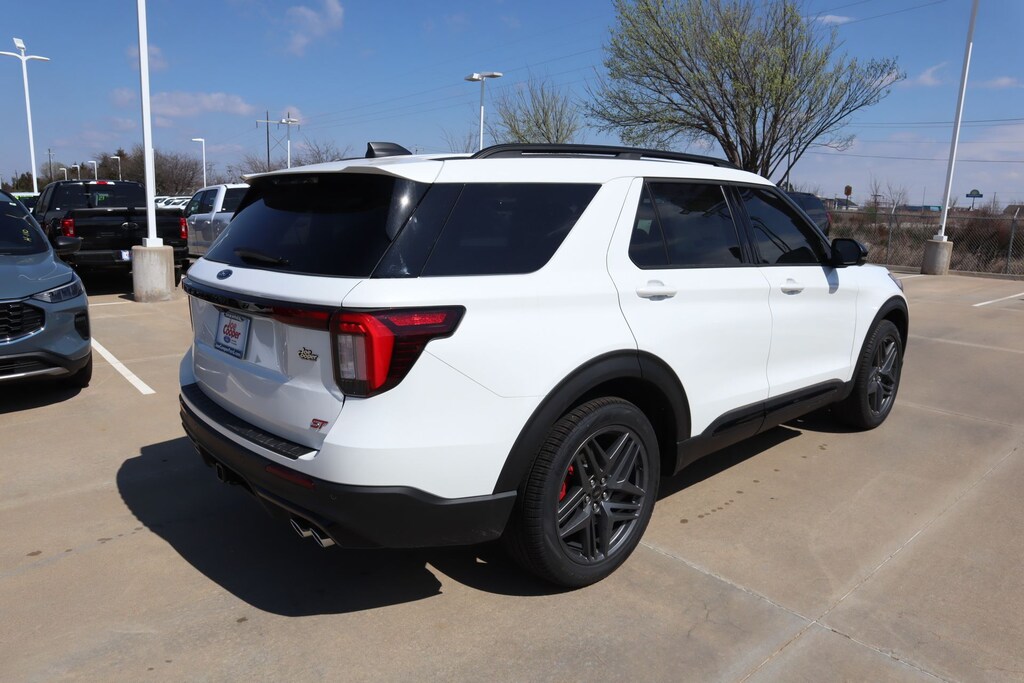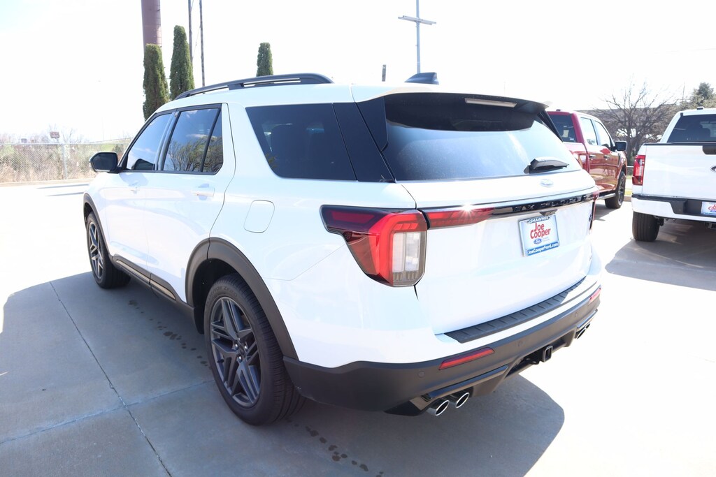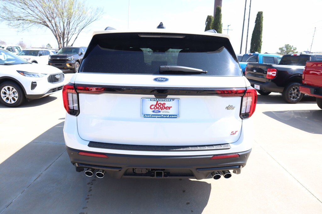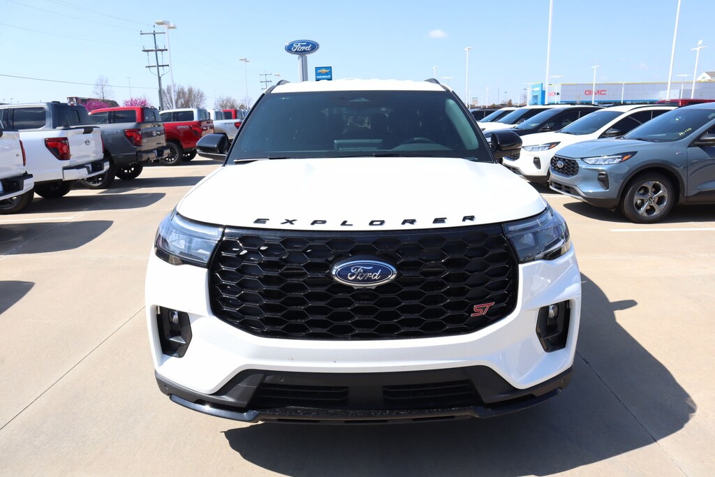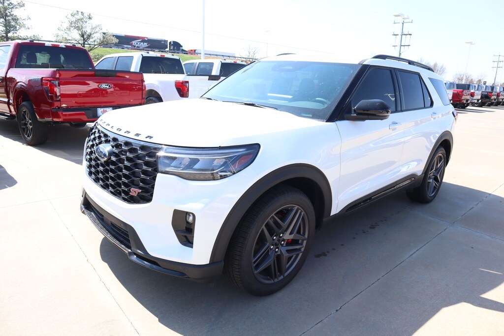 Joe Cooper Ford of Shawnee is honored to offer this good-looking 2026 Ford Explorer ST in Star White Metallic Tri-Coat. Well equipped with Equipment Group 400A Standard Package (Heated/Ventilated Miko Suede Captain's Chairs, Radio: B&O Sound System by Bang and Olufsen, and Wheels: 21" Magnetite-Painted Aluminum), 10 Speakers, AM/FM radio: SiriusXM with 360L, Navigation System, 3rd row seats: bench, 4-Wheel Disc Brakes, ABS brakes, Air Conditioning, Alloy wheels, Apple CarPlay/Android Auto, Auto High-beam Headlights, Auto-dimming door mirrors, Auto-dimming Rear-View mirror, Automatic temperature control, Brake assist, Bumpers: body-color, Compass, Delay-off headlights, Driver door bin, Driver vanity mirror, Dual front impact airbags, Dual front side impact airbags, Electronic Stability Control, Emergency communication system: 911 Assist, Exterior Parking Camera Rear, Four wheel independent suspension, Front anti-roll bar, Front Bucket Seats, Front Center Armrest, Front dual zone A/C, Front fog lights, Front reading lights, Fully automatic headlights, Garage door transmitter, Heated door mirrors, Heated front seats, Heated rear seats, Heated steering wheel, Illuminated entry, Knee airbag, Leather steering wheel, Low tire pressure warning, Memory seat, Occupant sensing airbag, Outside temperature display, Overhead airbag, Overhead console, Panic alarm, Passenger door bin, Passenger vanity mirror, Power door mirrors, Power driver seat, Power Liftgate, Power passenger seat, Power steering, Power windows, Rain sensing wipers, Rear air conditioning, Rear anti-roll bar, Rear reading lights, Rear window defroster, Rear window wiper, Remote keyless entry, Security system, Speed control, Speed-sensing steering, Speed-Sensitive Wipers, Split folding rear seat, Spoiler, Sport steering wheel, Steering wheel mounted audio controls, Tachometer, Telescoping steering wheel, Tilt steering wheel, Traction control, Trip computer, Turn signal indicator mirrors, Variably intermittent wipers, and Ventilated front seats.