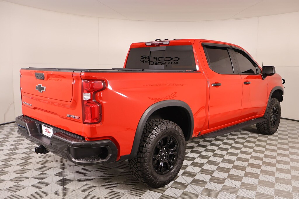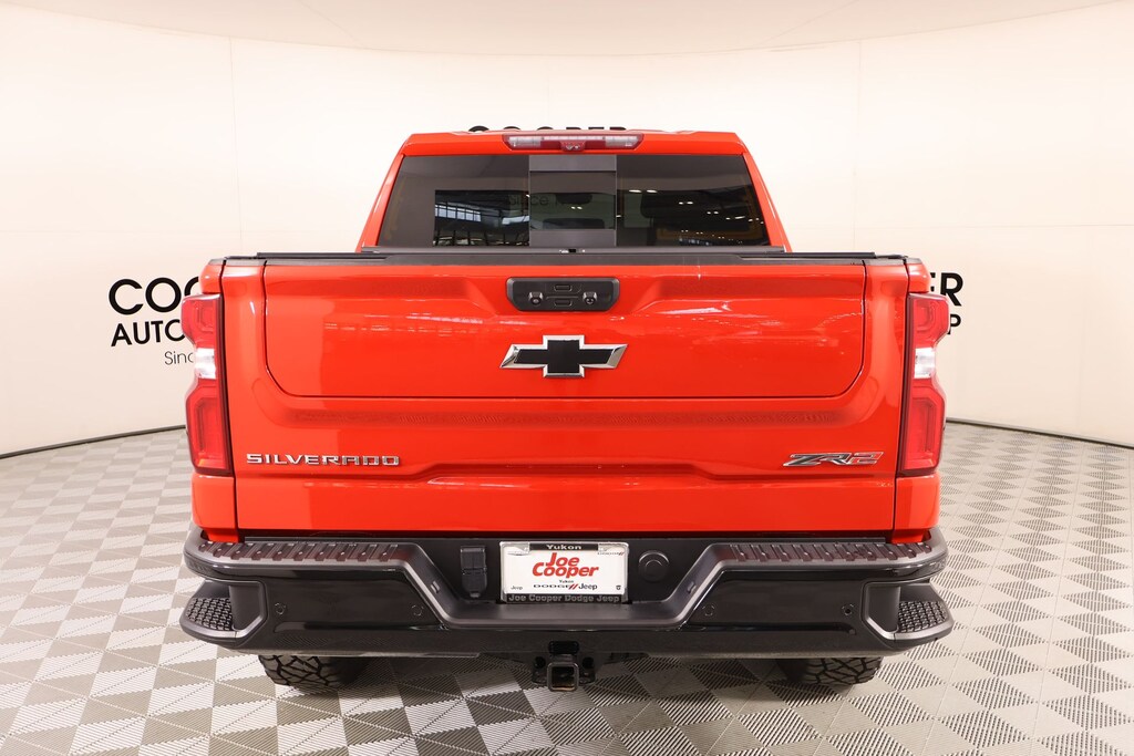 Joe Cooper Chrysler Dodge Jeep Ram of Yukon **405-265-1400** Red Hot 2022 Chevrolet Silverado 1500 ZR2 4WD EcoTec3 6.2L V8 THIS VEHICLE COMES EQUIPPED WITH THE FOLLOWING OPTIONS AND FEATURES: Preferred Equipment Group 3LT (10-Way Power Driver Seat w/Lumbar, 10-Way Power Passenger Seat Adjuster w/Lumbar, 12.3" Multicolor Reconfigurable Digital Display, 120-Volt Bed Mounted Power Outlet, 120-Volt Instrument Panel Power Outlet, 170 Amp Alternator, 2 USB Data Ports, 2nd Row Heated Outboard Seats, All-Weather Floor Liner (LPO), Auto-Dimming Inside Rear-View Mirror, Auto-Locking Rear Differential, Bed View Camera, Bluetooth® For Phone, Chevrolet Connected Access Capable, Chevytec Spray-On Black Bedliner, Color-Keyed Carpeting Floor Covering, Compass, Deep-Tinted Glass, Driver Memory, Dual Exhaust, Dual Rear USB Ports (Charge Only), Electric Rear-Window Defogger, Electrical Steering Column Lock, Electronic Cruise Control, EZ Lift Power Lock & Release Tailgate, Floor Mounted Center Console, Front LED Fog Lamps, Front Rainsensing Wipers, HD Surround Vision, Heated Driver & Front Outboard Passenger Seats, Heated Steering Wheel, Heavy-Duty Air Filter, High Gloss Black Mirror Caps, Hill Descent Control, Hitch Guidance w/Hitch View, Integrated Trailer Brake Controller, Keyless Open & Start, Leather Wrapped Steering Wheel, LED Cargo Area Lighting, Manual Tilt/Telescoping Steering Column, OnStar & Chevrolet Connected Services Capable, Outside Heated Power-Adjustable Mirrors, Performance Red Recovery Hooks, Perimeter Lighting, Power Front Passenger Windows w/Express Up/Down, Power Front Windows w/Driver Express Up/Down, Power Rear Windows w/Express Down, Power Sliding Rear Window w/Rear Defogger, Rear Cross Traffic Alert-Braking, Rear Park Assist, Rear Pedestrian Detection, Rear Wheelhouse Liners, Remote Vehicle Starter System, Safety Alert Seat, SiriusXM w/360L, Standard Tailgate, Steering Wheel Audio Controls, Theft Deterrent System (Unauthorized Entry), Trailer Camera Provisions, Trailer Side Blind Zone Alert, Trailering App, Universal Home Remote, Ventilated Driver & Front Passenger Seats, Wi-Fi Hot Spot Capable, Wireless Charging, and Wireless Phone Projection), Technology Package (15" Diagonal Multicolor Head-Up Display, Adaptive Cruise Control, Power Tilt & Telescoping Steering Column, and Rear Camera Mirror), Trailering Package (Hitch Guidance), Up-Level Rear Seat w/Storage Package, ZR2 Suspension Package, Cooper Certified Certified, 10-Speed Automatic, 4WD, Jet Black/Graystone Leather, 3.23 Rear Axle Ratio, 4-Wheel Disc Brakes, ABS brakes, Air Conditioning, Apple CarPlay/Android Auto, Auto-dimming door mirrors, Automatic Emergency Braking, Automatic temperature control, Brake assist, Delay-off headlights, Electronic Stability Control, Forward Collision Alert, Front anti-roll bar, Front dual zone A/C, Front fog lights, Front Pedestrian Braking, Front wheel independent suspension, Heated door mirrors, Heated front seats, Heated rear seats, Heated steering wheel, Illuminated entry, Memory seat, Occupant sensing airbag, Overhead airbag, Power driver seat, Power Sunroof, Rain sensing wipers, Rear window defroster, Telescoping steering wheel, Variably intermittent wipers, 7 Speakers, Alloy wheels, AM/FM radio: SiriusXM with 360L, Auto High-beam Headlights, Auto-dimming Rear-View mirror, Driver door bin, Driver vanity mirror, Dual front impact airbags, Dual front side impact airbags, Electronic Transmission Range Selector Shifter, Following Distance Indicator, Front Bucket Seats, Front Center Armrest, Front License Plate Kit, Front reading lights, Fully automatic headlights, Garage door transmitter, IntelliBeam Automatic High Beam On/Off, Lane Keep Assist w/Lane Departure Warning, Low tire pressure warning, Multi-Flex Tailgate, Not Equipped w/Steering Column Lock, Outside temperature display, Overhead console, Panic alarm, Passenger door bin, Passenger vanity mirror, Perforated Leather Seat Trim, Power door mirrors, Power passenger seat, P