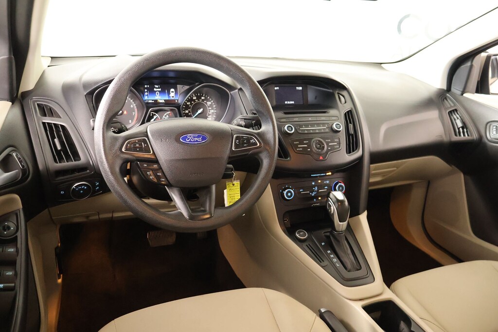 Clean Carfax, Bluetooth, Back Up Camera, Focus SE, 4D Sedan, 2.0L 4-Cylinder DGI Flex Fuel DOHC, 6-Speed Automatic with Powershift, FWD, Champagne, Medium Light Stone Cloth, 16" Painted Aluminum Alloy Wheels, 6 Speakers, ABS brakes, Air Conditioning, All-Weather Floor Mats, Alloy wheels, AM/FM radio, Brake assist, Bumpers: body-color, CD player, Cloth Front Bucket Seats, Compass, Delay-off headlights, Driver door bin, Driver vanity mirror, Dual front impact airbags, Dual front side impact airbags, Electronic Stability Control, Equipment Group 200A, Exterior Parking Camera Rear, Four wheel independent suspension, Front anti-roll bar, Front Bucket Seats, Front Center Armrest, Front reading lights, Fully automatic headlights, Illuminated entry, Interior Protection Package, Keyless-Entry Keypad, Knee airbag, Low tire pressure warning, Occupant sensing airbag, Outside temperature display, Overhead airbag, Panic alarm, Passenger door bin, Passenger vanity mirror, Power door mirrors, Power steering, Power windows, Premium Carpet Mat, Radio data system, Radio: AM/FM Single-CD/MP3-Capable, Rear anti-roll bar, Rear window defroster, Remote keyless entry, Speed control, Split folding rear seat, Steering wheel mounted audio controls, SYNC, Tachometer, Telescoping steering wheel, Tilt steering wheel, Traction control, Trip computer, Variably intermittent wipers.