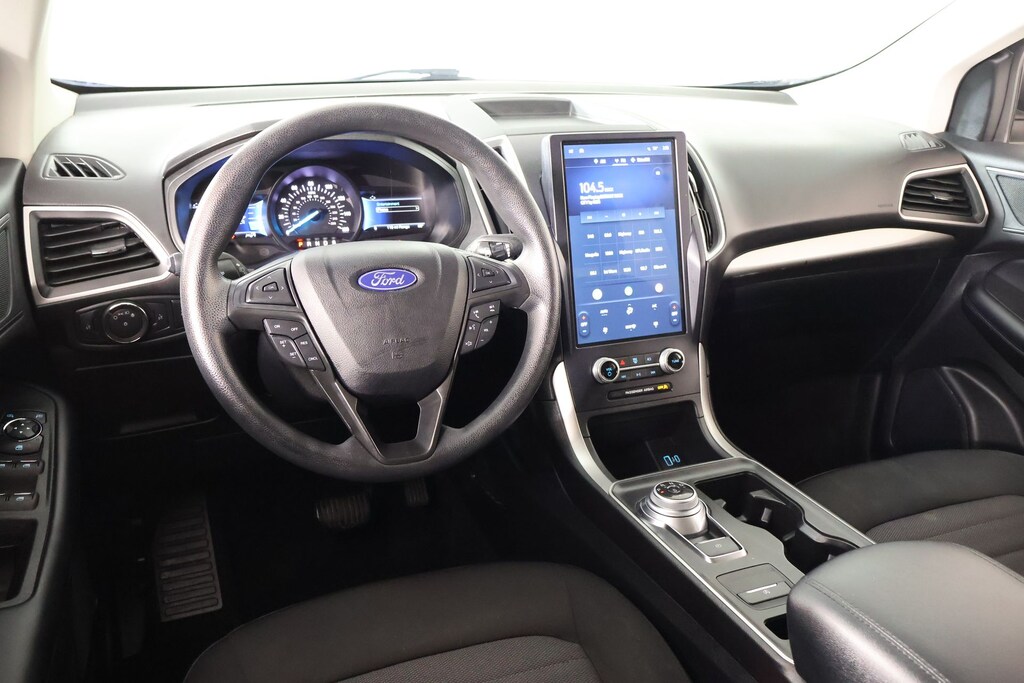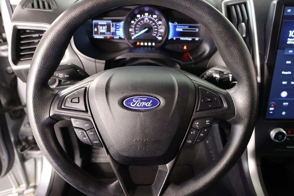THIS VEHICLE COMES EQUIPPED WITH THE FOLLOWING OPTIONS AND FEATURES: Equipment Group 100A, Edge SE, 4D Sport Utility, EcoBoost 2.0L I4 GTDi DOHC Turbocharged VCT, 8-Speed Automatic, AWD, Silver, Ebony Cloth, 3.80 Axle Ratio, 4-Wheel Disc Brakes, 6 Speakers, ABS brakes, Air Conditioning, Alloy wheels, AM/FM radio: SiriusXM with 360L, Auto High-beam Headlights, Automatic temperature control, Black Roof-Rack Side Rails, Brake assist, Bumpers: body-color, Cloth Bucket Seats, Compass, Delay-off headlights, Driver door bin, Driver vanity mirror, Dual front impact airbags, Dual front side impact airbags, Electronic Stability Control, Emergency communication system: SYNC 4 911 Assist, FordPass Connect, Four wheel independent suspension, Front anti-roll bar, Front Bucket Seats, Front Center Armrest w/Storage, Front dual zone A/C, Front reading lights, Fully automatic headlights, Illuminated entry, Knee airbag, Low tire pressure warning, Occupant sensing airbag, Outside temperature display, Overhead airbag, Overhead console, Panic alarm, Passenger door bin, Passenger vanity mirror, Power door mirrors, Power steering, Power windows, Radio: AM/FM Stereo/MP3 Capable, Rear anti-roll bar, Rear reading lights, Rear seat center armrest, Rear window defroster, Rear window wiper, Remote keyless entry, SiriusXM w/360L, Speed control, Speed-Sensitive Wipers, Split folding rear seat, Spoiler, Steering wheel mounted audio controls, SYNC 4A w/Enhanced Voice Recognition, Tachometer, Telescoping steering wheel, Tilt steering wheel, Traction control, Trip computer, Variably intermittent wipers, Wheels: 18" Sparkle Silver-Painted Aluminum, and Wheels: 18" Split-Spoke Sparkle Silver-Painted.