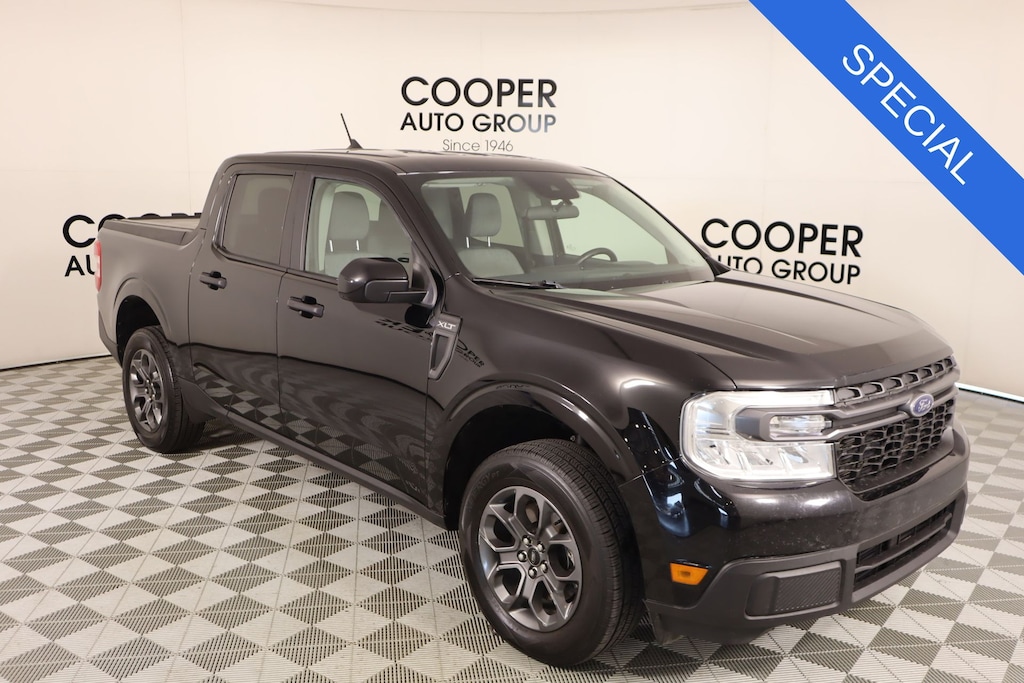 Clean Carfax, Bluetooth, Apple CarPlay, Android Auto, Back Up Camera, Maverick XLT, 4D Crew Cab, EcoBoost 2.0L I4 GTDi DOHC Turbocharged VCT, 8-Speed Automatic, FWD, Shadow Black, Navy Pier/Medium Slate Cloth, 2.91 Axle Ratio, 4-Wheel Disc Brakes, 4G LTE Wi-Fi Hotspot Removal, 6 Speakers, ABS brakes, Air Conditioning, AM/FM radio, Apple CarPlay/Android Auto, Auto High-beam Headlights, Automatic temperature control, BLIS Blind Spot Info System w/Cross-Traffic Alert, Brake assist, Bumpers: body-color, Compass, Delay-off headlights, Driver door bin, Driver vanity mirror, Dual front impact airbags, Dual front side impact airbags, Electronic Stability Control, Exterior Parking Camera Rear, Ford Co-Pilot360, Front anti-roll bar, Front Bucket Seats, Front Center Armrest, Front License Plate Bracket, Front reading lights, Front wheel independent suspension, Fully automatic headlights, Illuminated entry, Knee airbag, Lane-Keeping System, Low tire pressure warning, Occupant sensing airbag, Outside temperature display, Overhead airbag, Overhead console, Panic alarm, Passenger door bin, Passenger vanity mirror, Power steering, Power windows, Radio data system, Radio: AM/FM Stereo w/6 Speakers, Rear anti-roll bar, Rear step bumper, Remote keyless entry, Speed control, Speed-sensing steering, Steering wheel mounted audio controls, Telescoping steering wheel, Tilt steering wheel, Tonneau Pickup Box Cover - Hard Rollup, Traction control, Trip computer.
