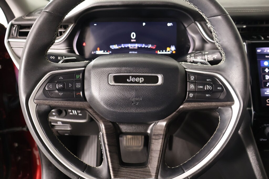 2023 Jeep Grand Cherokee L Luxury Tech Group II (2nd Row Manual Window Shades, Auto-Dimming Exterior Driver Mirror, Capri Leatherette w/Axis II Seats, Integrated Off-Road Camera, Intersection Collision Assist System, Memory Steering Column, ParkSense Front/Rear Park Assist w/Stop, Passive Entry - Front/Rear Doors, Liftgate, Power Tilt/Telescope Steering Column, Rain Sensitive Windshield Wipers, Rear Back Up Camera Washer, Rearview Autodim Digital Display Mirror, Surround View Camera System, Ventilated Front Seats, and Wireless Charging Pad), Quick Order Package 23E, Cooper Certified Certified, Active Noise Control System, AM/FM radio: SiriusXM with 360L, Dual-Pane Panoramic Sunroof, Front dual zone A/C, Interior Rear Facing Camera, Navigation System, Radio: Uconnect 5 Nav w/10.1" Display, Remote keyless entry, 3.45 Rear Axle Ratio, 3rd row seats: split-bench, 4-Wheel Disc Brakes, 506 Watt Amplifier, 6 Speakers, 9 Amplified Speakers w/Subwoofer, ABS brakes, Air Conditioning, Alloy wheels, Anti-whiplash front head restraints, Audio memory, Auto High-beam Headlights, Automatic temperature control, Brake assist, Bumpers: body-color, Capri Leatherette Seats, Compass, Delay-off headlights, Driver door bin, Driver vanity mirror, Dual front impact airbags, Dual front side impact airbags, Electronic Stability Control, Emergency communication system, Four wheel independent suspension, Front anti-roll bar, Front Bucket Seats, Front Center Armrest w/Storage, Front fog lights, Front reading lights, Fully automatic headlights, Garage door transmitter, Heated door mirrors, Heated front seats, Heated rear seats, Heated steering wheel, Illuminated entry, Knee airbag, Low tire pressure warning, Manual Fold Seatbacks, Memory seat, Molded In Color Black/Gloss Black Roof Rails, Normal Duty Suspension, Occupant sensing airbag, Outside temperature display, Overhead airbag, Overhead console, Panic alarm, ParkView Rear Back-Up Camera, Passenger door bin, Passenger vanity mirror, Power door mirrors, Power driver seat, Power Liftgate, Power passenger seat, Power steering, Power windows, Radio data system, Rear air conditioning, Rear anti-roll bar, Rear reading lights, Rear window defroster, Rear window wiper, Reclining 3rd row seat, Security system, Speed control, Speed-Sensitive Wipers, Split folding rear seat, Spoiler, Steering wheel mounted audio controls, Tachometer, Telescoping steering wheel, Tilt steering wheel, Tract