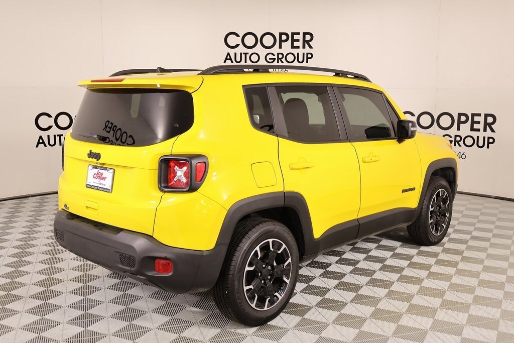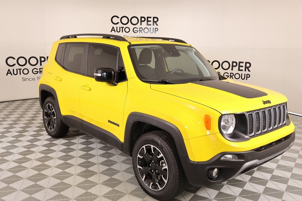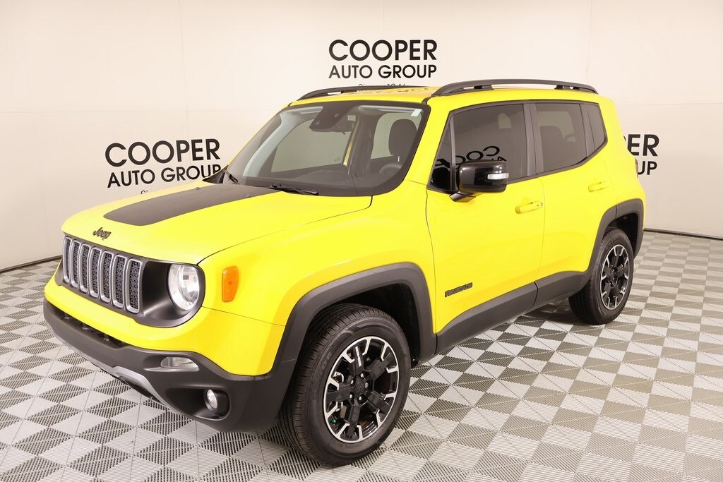 Joe Cooper Chrysler Dodge Jeep Ram of Yukon **405-265-1400** Solar Yellow Clearcoat 2023 Jeep Renegade Latitude 4WD 1.3L I4 THIS VEHICLE COMES EQUIPPED WITH THE FOLLOWING OPTIONS AND FEATURES: Cooper Certified Certified, 17" x 7.0" Aluminum Wheels, 3.734 Final Drive Ratio, 4-Wheel Disc Brakes, 6 Speakers, ABS brakes, Air Conditioning, Alloy wheels, AM/FM radio: SiriusXM, Anti-whiplash front head restraints, Apple CarPlay/Android Auto, Automatic temperature control, Brake assist, Cloth Bucket Seats, Compass, Delay-off headlights, Driver door bin, Driver vanity mirror, Dual front impact airbags, Dual front side impact airbags, Electronic Stability Control, Emergency communication system: SiriusXM Guardian, Four wheel independent suspension, Front anti-roll bar, Front Bucket Seats, Front Center Armrest, Front dual zone A/C, Front reading lights, Heated door mirrors, Illuminated entry, Knee airbag, Low tire pressure warning, Navigation System, Normal Duty Suspension, Occupant sensing airbag, Outside temperature display, Overhead airbag, ParkView Rear Back-Up Camera, Passenger door bin, Passenger vanity mirror, Power door mirrors, Power steering, Power windows, Radio data system, Radio: Uconnect 4C Nav w/8.4" Display, Rear anti-roll bar, Rear window defroster, Rear window wiper, Remote keyless entry, Roof rack: rails only, Security system, Speed control, Split folding rear seat, Spoiler, Steering wheel mounted audio controls, Tachometer, Telescoping steering wheel, Tilt steering wheel, Traction control, Trip computer, Variably intermittent wipers, and Voltmeter. Recent Arrival! Cooper Certified, NO ACCIDENT HISTORY ON CARFAX!!!!, NAVIGATION/GPS/NAV, REAR VIEW CAMERA, KEYLESS ENTRY, BLUETOOTH HANDS FREE, APPLE CARPLAY, 17" x 7.0" Aluminum Wheels, 3.734 Final Drive Ratio, 4-Wheel Disc Brakes, 6 Speakers, ABS brakes, Air Conditioning, Alloy wheels, AM/FM radio: SiriusXM, Anti-whiplash front head restraints, Apple CarPlay/Android Auto, Automatic temperature control, Brake assist, Cloth Bucket Seats, Compass, Delay-off headlights, Driver door bin, Driver vanity mirror, Dual front impact airbags, Dual front side impact airbags, Electronic Stability Control, Emergency communication system: SiriusXM Guardian, Four wheel independent suspension, Front anti-roll bar, Front Bucket Seats, Front Center Armrest, Front dual zone A/C, Front reading lights, Heated door mirrors, Illuminated entry, Knee airbag, Low tire pressure warning, Navigation System, Normal Duty Suspension, Occupant sensing airbag, Outside temperature display, Overhead airbag, ParkView Rear Back-Up Camera, Passenger door bin, Passenger vanity mirror, Power door mirrors, Power steering, Power windows, Radio data system, Radio: Uconnect 4C Nav w/8.4" Display, Rear anti-roll bar, Rear window defroster, Rear window wiper, Remote keyless entry, Roof rack: rails only, Security system, Speed control, Split folding rear seat, Spoiler, Steering wheel mounted audio controls, Tachometer, Telescoping steering wheel, Tilt steering wheel, Traction control, Trip computer, Variably intermittent wipers, Voltmeter.