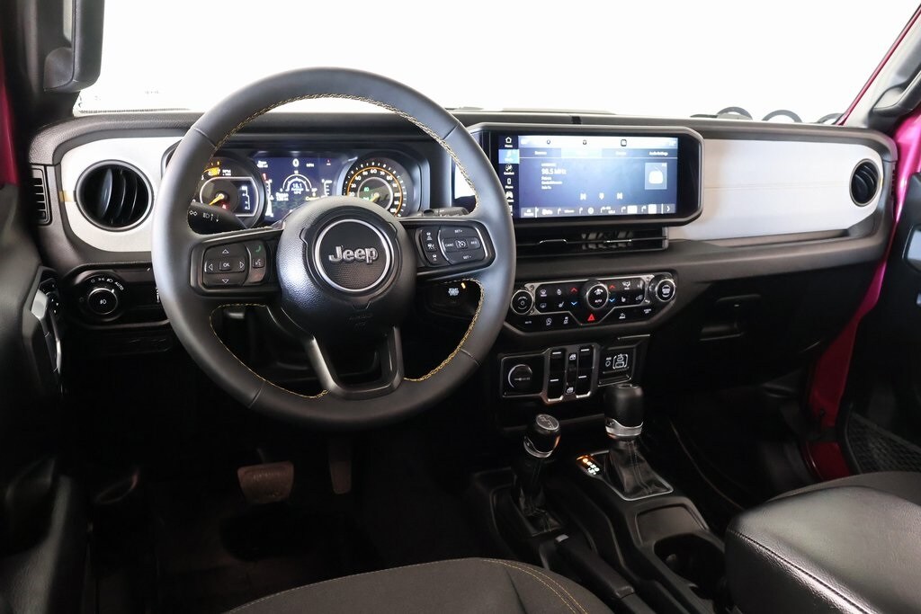 2024 Jeep Wrangler Convenience Group (2-Door Passive Entry, Front Door Locks, Air Conditioning w/Auto Temperature Control, Air Filtering, Cluster 7.0" TFT Color Display, Emergency/Assistance Call, Heated Front Seats, Heated Steering Wheel, Remote Start System, and Universal Garage Door Opener), Quick Order Package 24S Sport S (Advanced Brake Assist, Automatic Headlamps, Corning Gorilla Glass, Deep Tint Sunscreen Windows, Enhanced Adaptive Cruise Control, Front 1-Touch Down Power Windows, Full Speed Forward Collision Warning Plus, Power Heated Mirrors, Premium Wrapped Steering Wheel, Remote Keyless Entry, Security Alarm, Speed Sensitive Power Locks, Sport S, Sun Visors w/Illuminated Vanity Mirrors, and Wheels: 17" x 7.5" Gray), Cooper Certified Certified, Radio: Uconnect 5 w/12.3" Display, 110 MPH Vehicle Max Speed Calibration, 4-Wheel Disc Brakes, 8 Speakers, ABS brakes, Air Conditioning, AM/FM radio, Apple CarPlay/Android Auto, Aux Battery, Black 3-Piece Hard Top, Brake assist, Cloth Low-Back Bucket Seats, Compass, Delay-off headlights, Driver door bin, Driver vanity mirror, Dual front impact airbags, Dual front side impact airbags, Electronic Stability Control, Front anti-roll bar, Front Bucket Seats, Front Center Armrest w/Storage, Front fog lights, Front reading lights, Integrated roll-over protection, Low tire pressure warning, Non-Lock Fuel Cap w/o Discriminator, Normal Duty Suspension, Occupant sensing airbag, Outside temperature display, Overhead airbag, ParkView Rear Back-Up Camera, Passenger door bin, Passenger vanity mirror, Power steering, Radio data system, Rear anti-roll bar, Rear reading lights, Speed control, Split folding rear seat, Steering wheel mounted audio controls, Stop-Start Dual Battery System, Tachometer, Telescoping steering wheel, Tilt steering wheel, Traction control, Trip computer, Variably intermittent wipers, and Wheels: 17" x 7.5" Black Steel Styled.