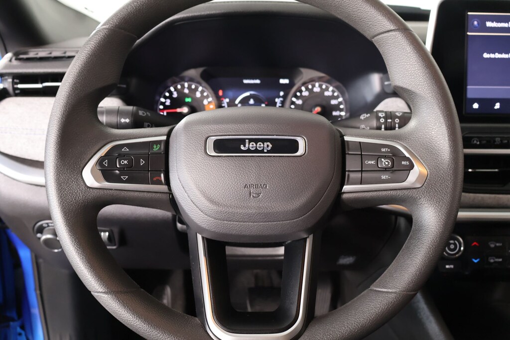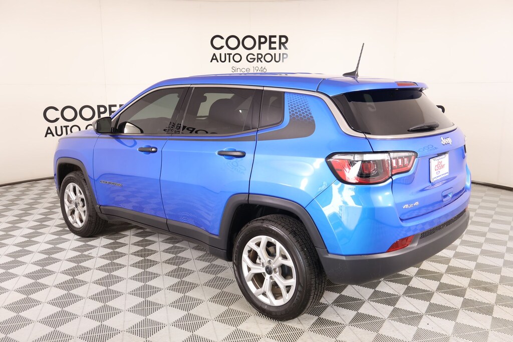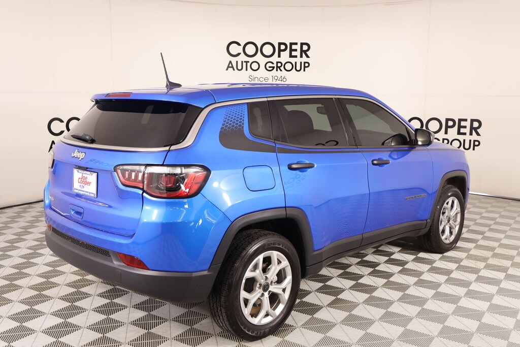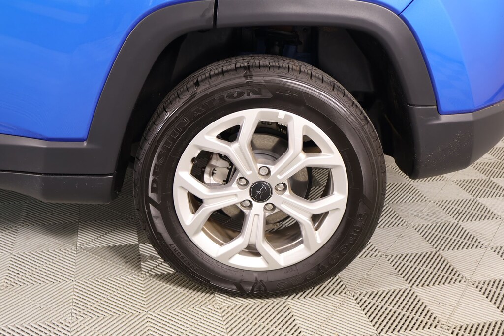 THIS VEHICLE COMES EQUIPPED WITH THE FOLLOWING OPTIONS AND FEATURES: MOPAR Graphics Package (MOPAR Bodyside Graphic and MOPAR Hood Graphic), Quick Order Package 29A, Compass Sport, 4D Sport Utility, 2.0L I4 DOHC, 8-Speed Automatic, 4WD, Hydro Blue Pearlcoat, Black Cloth, 17" x 7" Aluminum Wheels, 3.73 Final Drive Ratio, 4-Wheel Disc Brakes, 6 Speakers, ABS brakes, Air Conditioning, Alloy wheels, AM/FM radio: SiriusXM, Apple CarPlay/Android Auto, Brake assist, Bumpers: body-color, Cloth Low-Back Bucket Seats, Compass, Delay-off headlights, Driver door bin, Driver vanity mirror, Dual front impact airbags, Dual front side impact airbags, Electronic Stability Control, Emergency communication system: Jeep Connect, Four wheel independent suspension, Front anti-roll bar, Front Bucket Seats, Front Center Armrest w/Storage, Front reading lights, Fully automatic headlights, Heated door mirrors, Illuminated entry, Knee airbag, Leather steering wheel, Low tire pressure warning, Occupant sensing airbag, Outside temperature display, Overhead airbag, Overhead console, Panic alarm, ParkView Rear Back-Up Camera, Passenger door bin, Passenger vanity mirror, Power door mirrors, Power steering, Power windows, Premium audio system: UConnect 5, Radio: Uconnect 5 w/8.4" Display, Rear anti-roll bar, Rear seat center armrest, Rear window defroster, Rear window wiper, Remote keyless entry, Security system, Speed control, Split folding rear seat, Spoiler, Steering wheel mounted audio controls, Tachometer, Telescoping steering wheel, Tilt steering wheel, Traction control, Trip computer, and Variably intermittent wipers.