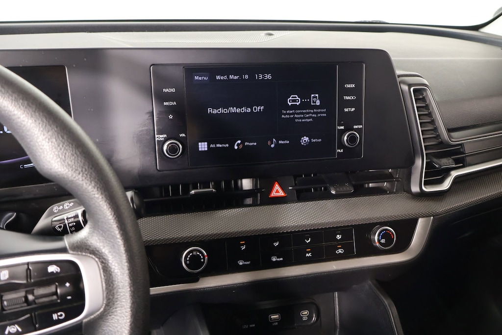 Inside, the Sportage LX pampers you with thoughtful features like air conditioning, power windows, remote keyless entry, and steering wheel-mounted audio controls. The 6-speaker audio system and AM/FM/HD radio keep you entertained on the road, while the rear window defroster and carpeted floor mats add to the overall comfort and convenience.