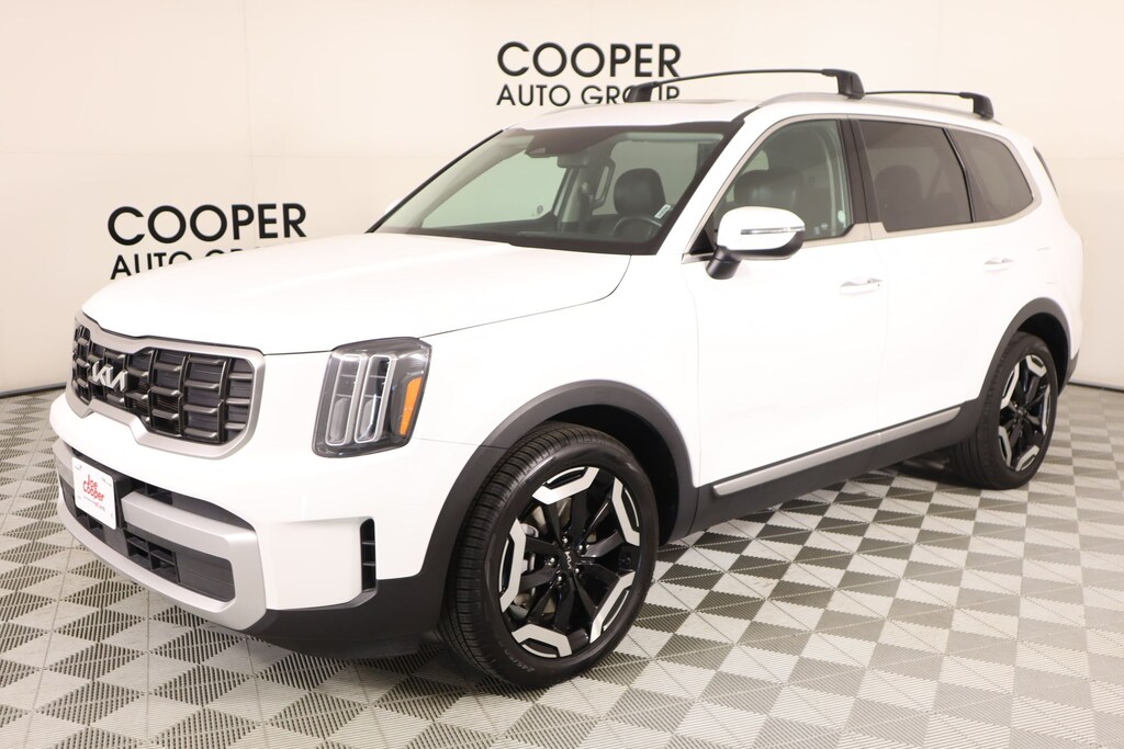 2025 Kia Telluride Cooper Certified Certified, Automatic temperature control, Front dual zone A/C, Navigation System, Radio: AM/FM Display Audio System, Remote keyless entry, Steering wheel mounted audio controls, 3rd row seats: split-bench, 4-Wheel Disc Brakes, 6 Speakers, ABS brakes, Air Conditioning, Alloy wheels, AM/FM radio: SiriusXM, Apple CarPlay & Android Auto, Auto High-beam Headlights, Brake assist, Bumpers: body-color, Carpeted Floor Mats, Cross Bars, Delay-off headlights, Driver door bin, Driver vanity mirror, Dual front impact airbags, Dual front side impact airbags, Electronic Stability Control, Emergency communication system: 911 Connect, Exterior Parking Camera Rear, Four wheel independent suspension, Front anti-roll bar, Front Bucket Seats, Front Center Armrest, Front reading lights, Fully automatic headlights, Heated door mirrors, Heated Front Bucket Seats, Heated front seats, Illuminated entry, Knee airbag, Leather Shift Knob, Leather steering wheel, Low tire pressure warning, Occupant sensing airbag, Outside temperature display, Overhead airbag, Overhead console, Panic alarm, Passenger door bin, Passenger vanity mirror, Power door mirrors, Power driver seat, Power Liftgate, Power moonroof, Power steering, Power windows, Radio data system, Rear air conditioning, Rear anti-roll bar, Rear audio controls, Rear reading lights, Rear side impact airbag, Rear window defroster, Rear window wiper, Reclining 3rd row seat, Security system, Speed control, Speed-sensing steering, Split folding rear seat, Spoiler, SynTex Synthetic Leather Seat Trim, Tachometer, Telescoping steering wheel, Tilt steering wheel, Traction control, Trip computer, Turn signal indicator mirrors, Variably intermittent wipers, and Wheels: 20" x 7.5" Black Finish.