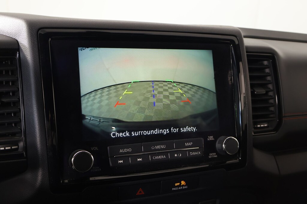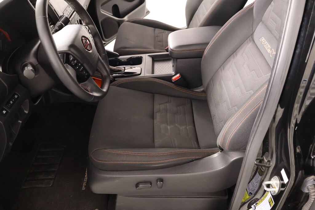 THIS VEHICLE COMES EQUIPPED WITH THE FOLLOWING OPTIONS AND FEATURES: Technology Package (Blind Spot Warning, High Beam Assist (HBA), Intelligent Cruise Control, Lane Departure Warning System, Rear Automatic Braking (RAB), Rear Cross Traffic Alert (RCTA), Rear Sonar System, and Traffic Sign Recognition (TSR)), Frontier PRO-X, 4D Crew Cab, 3.8L DI DOHC 24V V6, 9-Speed Automatic, RWD, Super Black, Steel Cloth, 17" Alloy Wheels, 3.692 Axle Ratio, 4-Wheel Disc Brakes, 6 Speakers, ABS brakes, Air Conditioning, Alloy wheels, AM/FM radio: SiriusXM, Anti-whiplash front head restraints, Auto High-beam Headlights, Automatic temperature control, Brake assist, Bumpers: body-color, Delay-off headlights, Driver door bin, Driver vanity mirror, Dual front impact airbags, Dual front side impact airbags, Electronic Stability Control, Emergency communication system: NissanConnect Services, Front anti-roll bar, Front Bucket Seats, Front Center Armrest, Front dual zone A/C, Front fog lights, Front reading lights, Front wheel independent suspension, Fully automatic headlights, Illuminated entry, Knee airbag, Leather Shift Knob, Low tire pressure warning, Navigation system: Nissan Navigation with Voice Recognition, Occupant sensing airbag, Off-Road Style Step Rails, Overhead airbag, Panic alarm, Power door mirrors, Power driver seat, Power steering, Power windows, PRO Embroidered Premium Cloth Seat Trim, Radio data system, Radio: SXM/AM/FM/AUX/USB Audio System w/6 Speakers, Rear anti-roll bar, Rear seat center armrest, Rear step bumper, Remote keyless entry, Security system, Speed control, Speed-sensing steering, Split folding rear seat, Steering wheel mounted audio controls, Tilt steering wheel, Traction control, Floor Mats, Overhead console, Passenger door bin, Passenger van