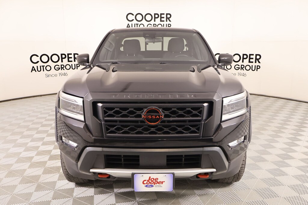 Clean Carfax, Bluetooth, Apple CarPlay, Android Auto, Back Up Camera, Cooper Certified, Frontier PRO-X, 4D Crew Cab, 3.8L DI DOHC 24V V6, 9-Speed Automatic, RWD, Super Black, Steel Cloth, 17" Alloy Wheels, 3.692 Axle Ratio, 4-Wheel Disc Brakes, 6 Speakers, ABS brakes, Air Conditioning, Alloy wheels, AM/FM radio: SiriusXM, Anti-whiplash front head restraints, Auto High-beam Headlights, Automatic temperature control, Blind Spot Warning, Brake assist, Bumpers: body-color, Delay-off headlights, Driver door bin, Driver vanity mirror, Dual front impact airbags, Dual front side impact airbags, Electronic Stability Control, Emergency communication system: NissanConnect Services, Front anti-roll bar, Front Bucket Seats, Front Center Armrest, Front dual zone A/C, Front fog lights, Front reading lights, Front wheel independent suspension, Fully automatic headlights, High Beam Assist (HBA), Illuminated entry, Intelligent Cruise Control, Knee airbag, Lane Departure Warning System, Leather Shift Knob, Low tire pressure warning, Navigation system: Nissan Navigation with Voice Recognition, Occupant sensing airbag, Off-Road Style Step Rails, Overhead airbag, Panic alarm, Power door mirrors, Power driver seat, Power steering, Power windows, PRO Embroidered Premium Cloth Seat Trim, Radio data system, Radio: SXM/AM/FM/AUX/USB Audio System w/6 Speakers, Rear anti-roll bar, Rear Automatic Braking (RAB), Rear Cross Traffic Alert (RCTA), Rear seat center armrest, Rear Sonar System, Rear step bumper, Remote keyless entry, Security system, Speed control, Speed-sensing steering, Split folding rear seat, Steering wheel mounted audio controls, Technology Package, Tilt steering wheel, Traction control, Traffic Sign Recognition (TSR).