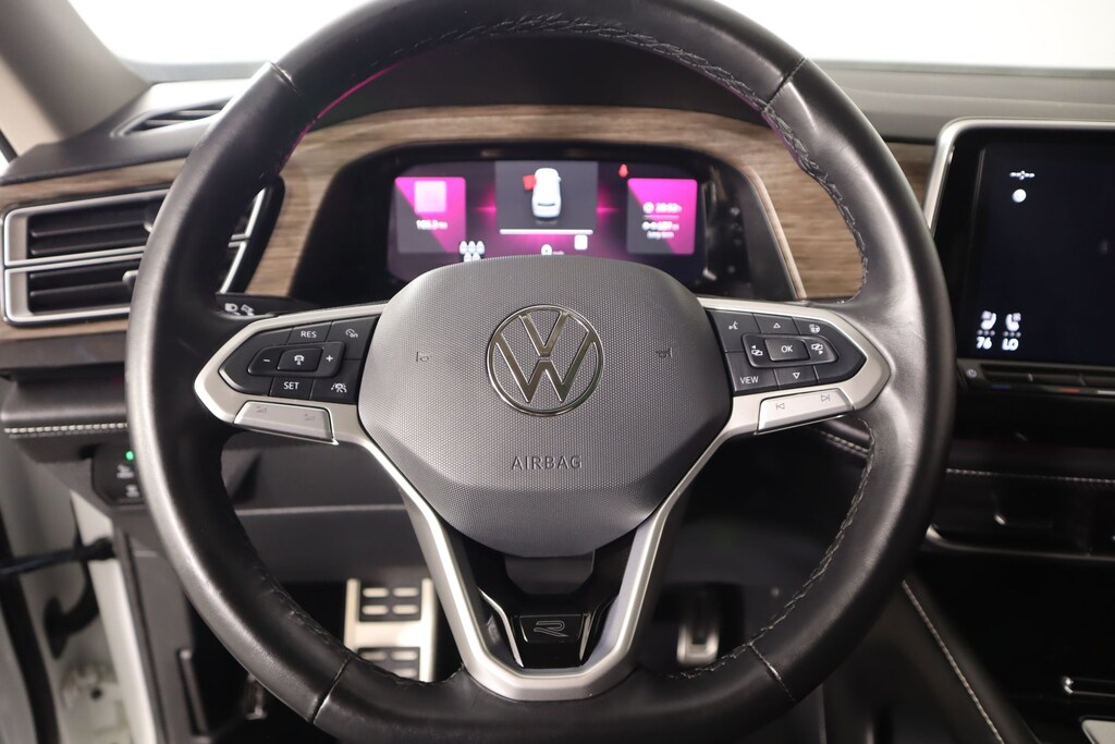 THIS VEHICLE COMES EQUIPPED WITH THE FOLLOWING OPTIONS AND FEATURES: Cooper Certified Certified, 10 Speakers, 3.60 Axle Ratio, 3rd row seats: split-bench, 4-Wheel Disc Brakes, ABS brakes, Air Conditioning, Alloy wheels, AM/FM radio: SiriusXM with 360L, Auto High-beam Headlights, Auto-dimming Rear-View mirror, Automatic temperature control, Brake assist, Bumpers: body-color, Compass, Delay-off headlights, Driver door bin, Driver vanity mirror, Dual front impact airbags, Dual front side impact airbags, Electronic Stability Control, Emergency communication system: VW Car-Net Safe & Secure 5-year, Exterior Parking Camera Rear, Four wheel independent suspension, Front anti-roll bar, Front Bucket Seats, Front Center Armrest, Front dual zone A/C, Front fog lights, Front reading lights, Fully automatic headlights, harman/kardon® Speakers, Heads-Up Display, Heated door mirrors, Heated front seats, Heated rear seats, Heated steering wheel, Heated/Actively Ventilated Front Bucket Seats, Illuminated entry, Leather steering wheel, Low tire pressure warning, Memory seat, Navigation System, Occupant sensing airbag, Outside temperature display, Overhead airbag, Overhead console, Panic alarm, Passenger door bin, Passenger vanity mirror, Perforated Vienna Leather Seating Surfaces, Power door mirrors, Power driver seat, Power Liftgate, Power moonroof: Panoramic, Power passenger seat, Power steering, Power windows, Radio data system, Radio: MIB3 Discover Media w/Navigation, Rain sensing wipers, Rear air conditioning, Rear anti-roll bar, Rear audio controls, Rear reading lights, Rear seat center armrest, Rear window defroster, Rear window wiper, Remote keyless entry, Security system, Speed control, Speed-sensing steering, Split folding rear seat, Spoiler, Sport steering wheel, Standard Suspension, Steering wheel mounted audio controls, Tachometer, Telescoping steering wheel, Tilt steering wheel, Traction control, Trip computer, Turn signal indicator mirrors, Variably intermittent wipers, Ventilated front seats, and Wheels: 21" 2-Tone Machined Alloy.